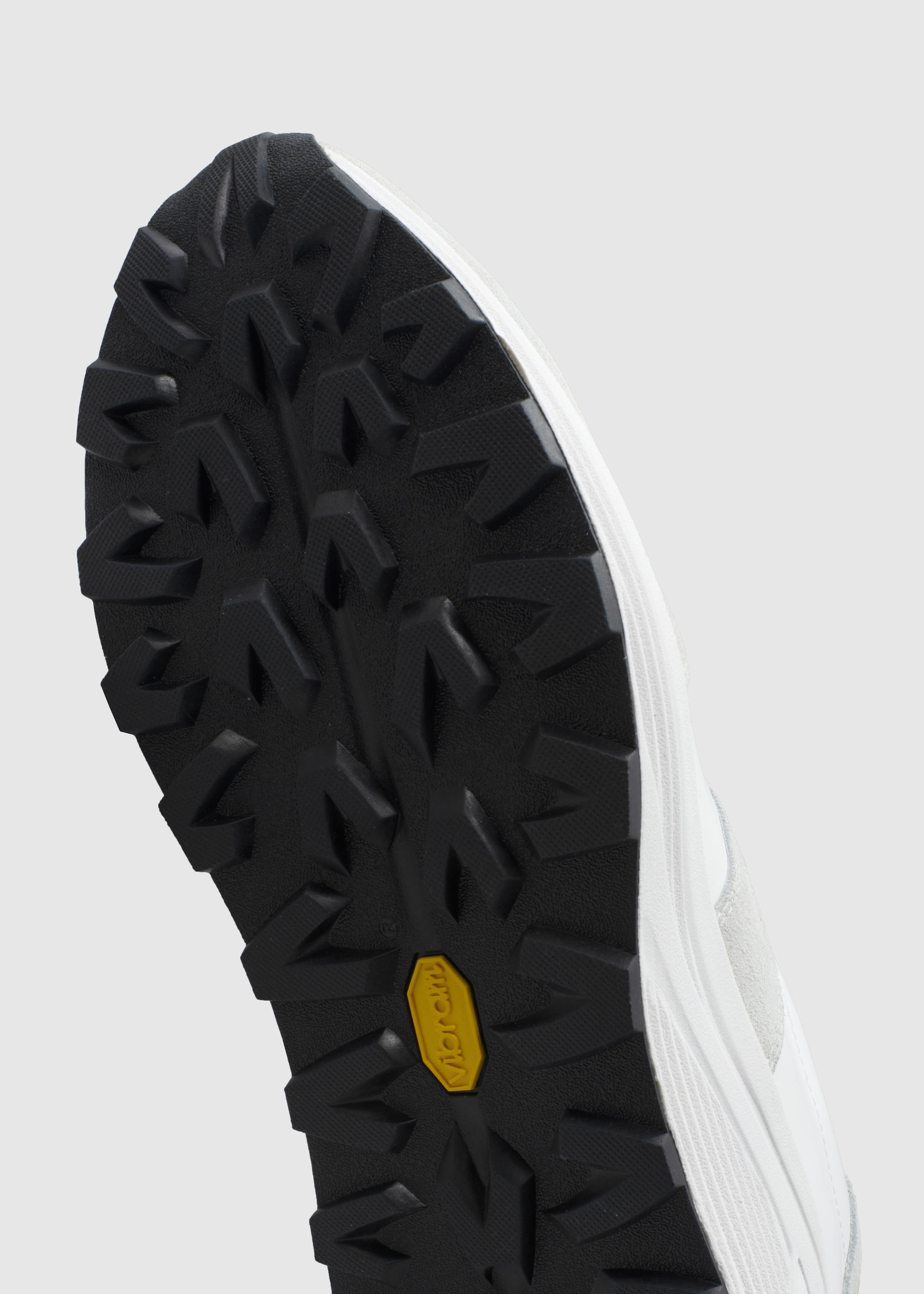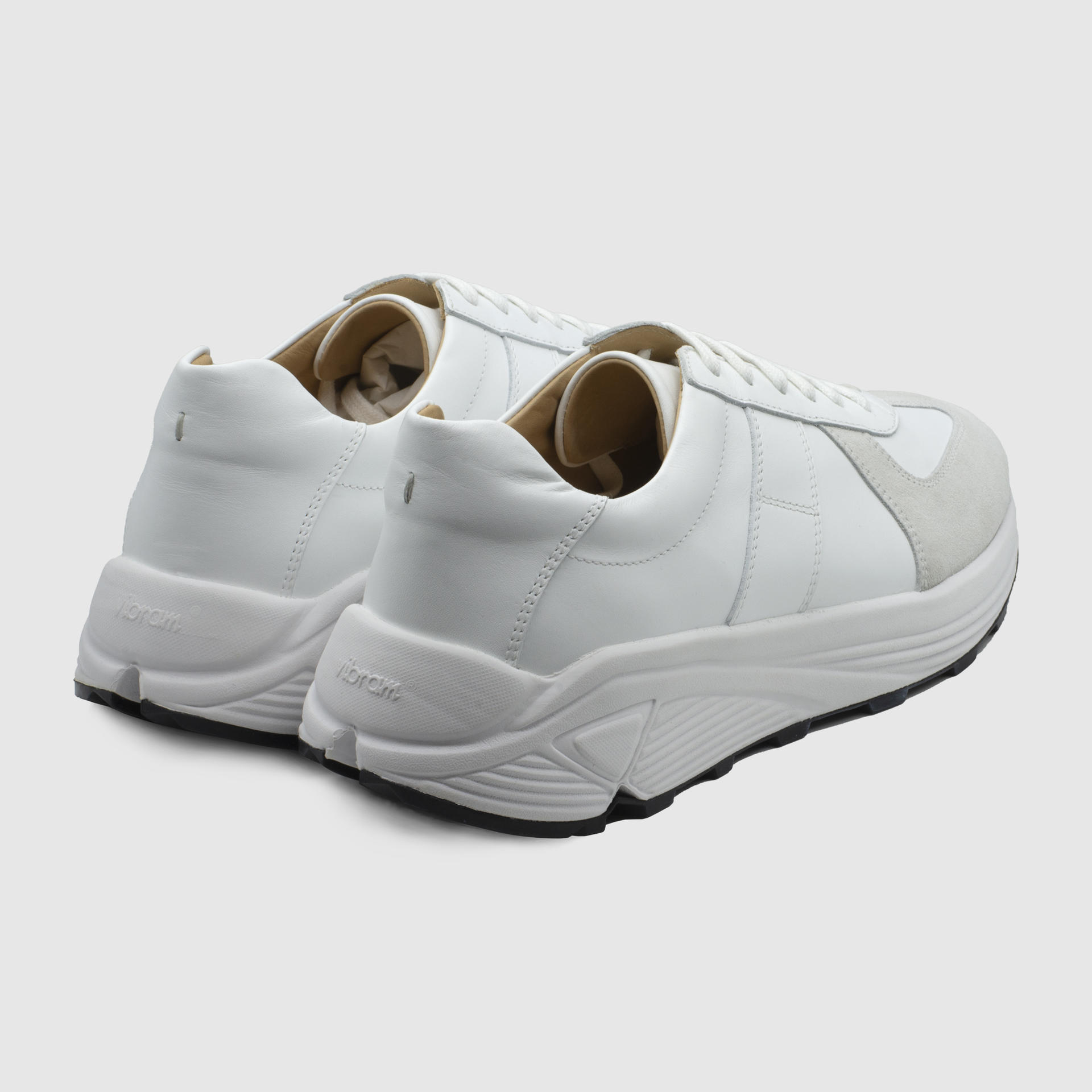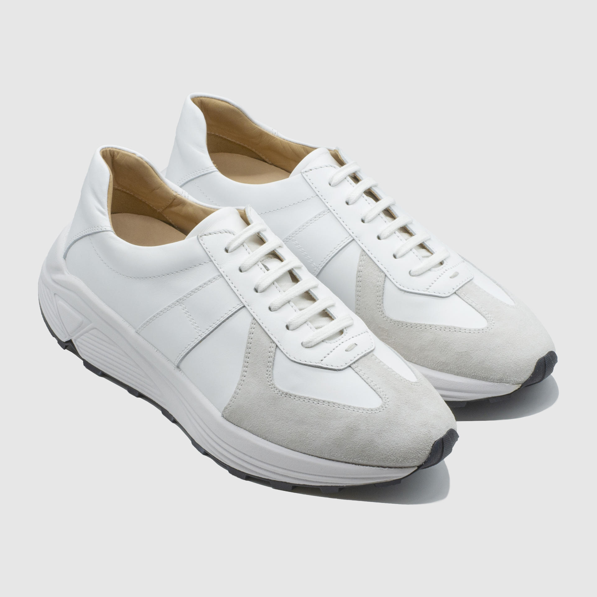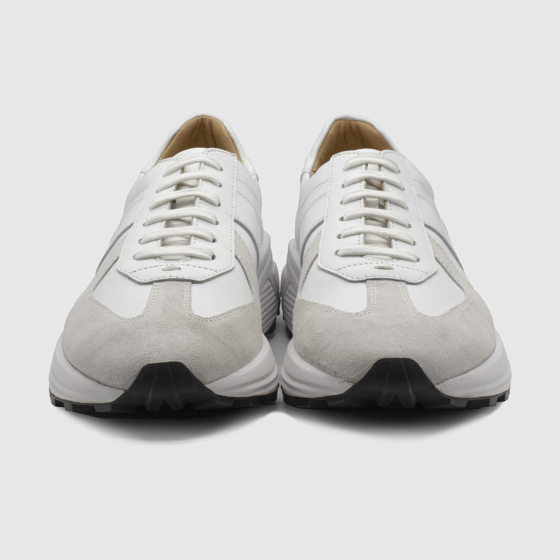 화이트 색상의 송아지 가죽 로우탑 러너 둥그런 신발 앞코. 신발 끈으로 조임처리. 여섯 개의 끈 구멍. 신발 뒷 축에 시그니쳐 'I' 로고 스티칭. 송아지 가죽으로 내부 처리. 가죽색상과 동일한 색상의 스티치. 굽 높이 5.5cm.